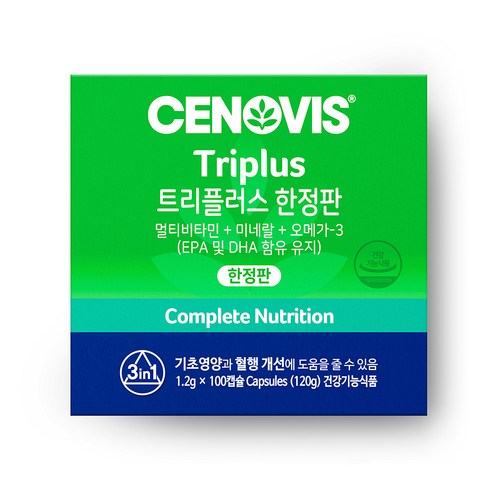 - 트리플러스 50+: 50세 이후의 눈과 뼈 건강을 고려한 오메가-3, 칼슘 강화